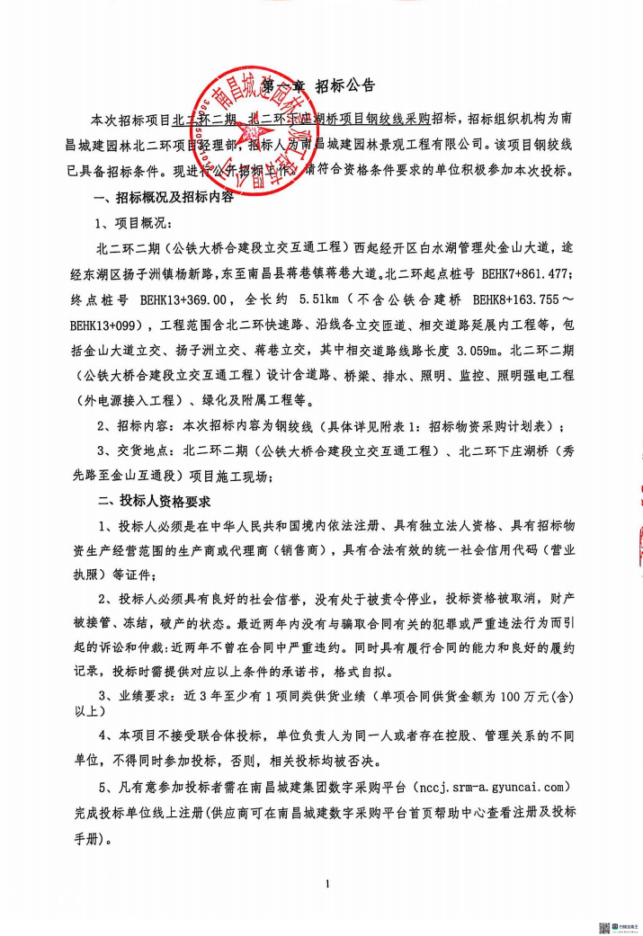 北二环二期、北二环下庄湖桥项目钢绞线采购招标公告