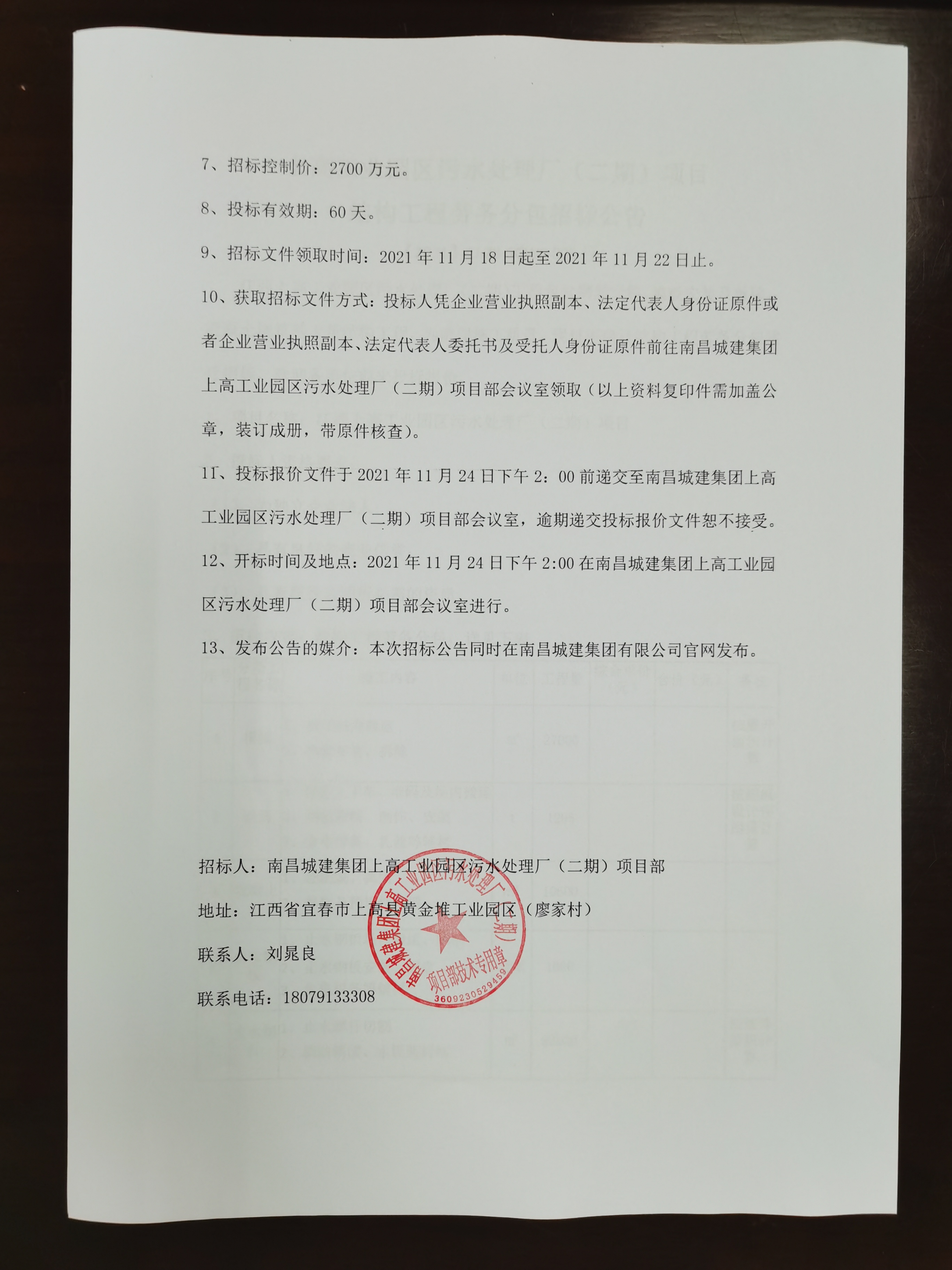 1、项目名称:江西上高工业园区污水处理厂(二期)项目