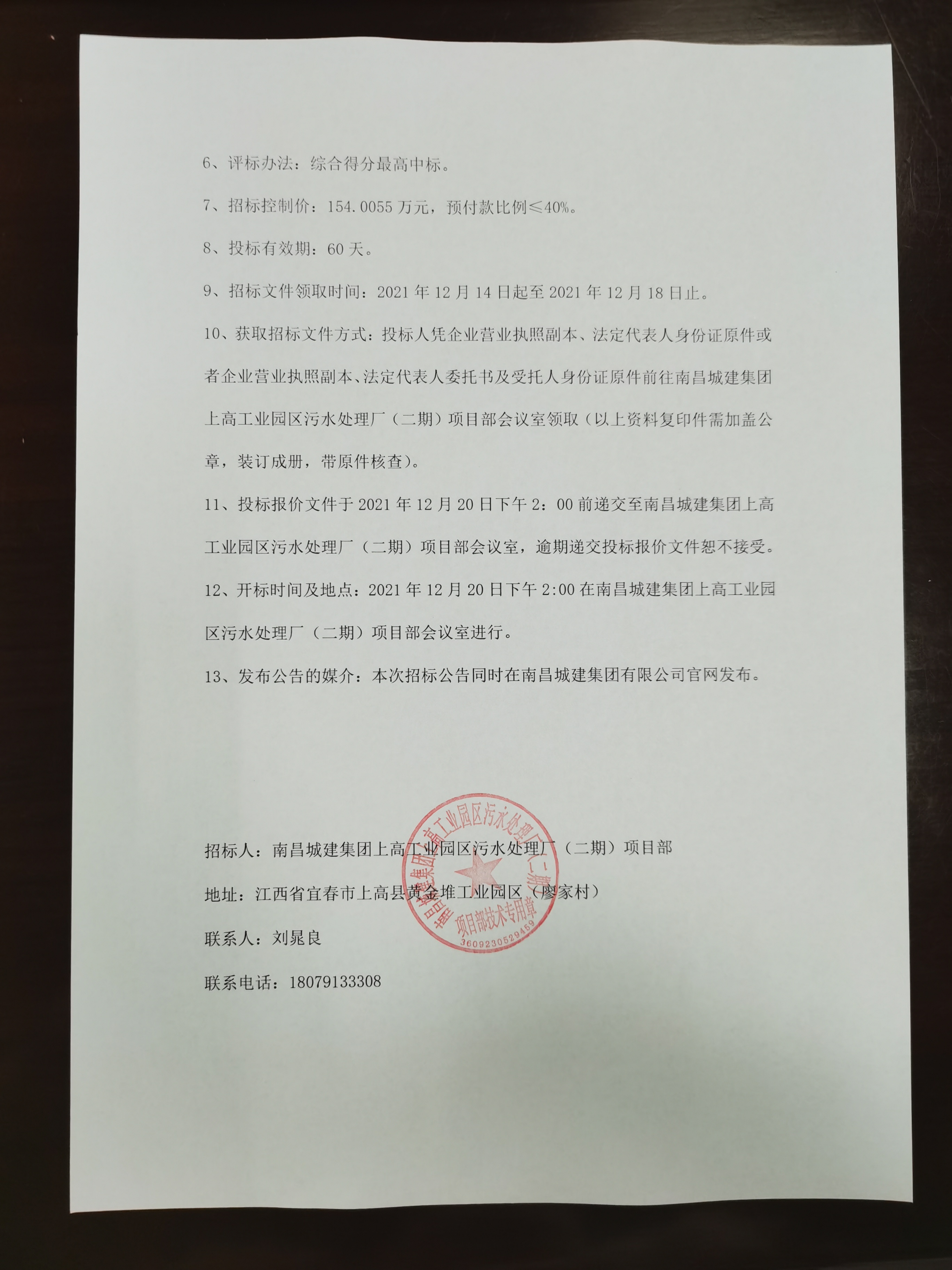 12、开标时间及地点:2021年12月20日下午2:00在威廉体育集团上高工业园区污水处理厂(二期)项目部会议室进行。