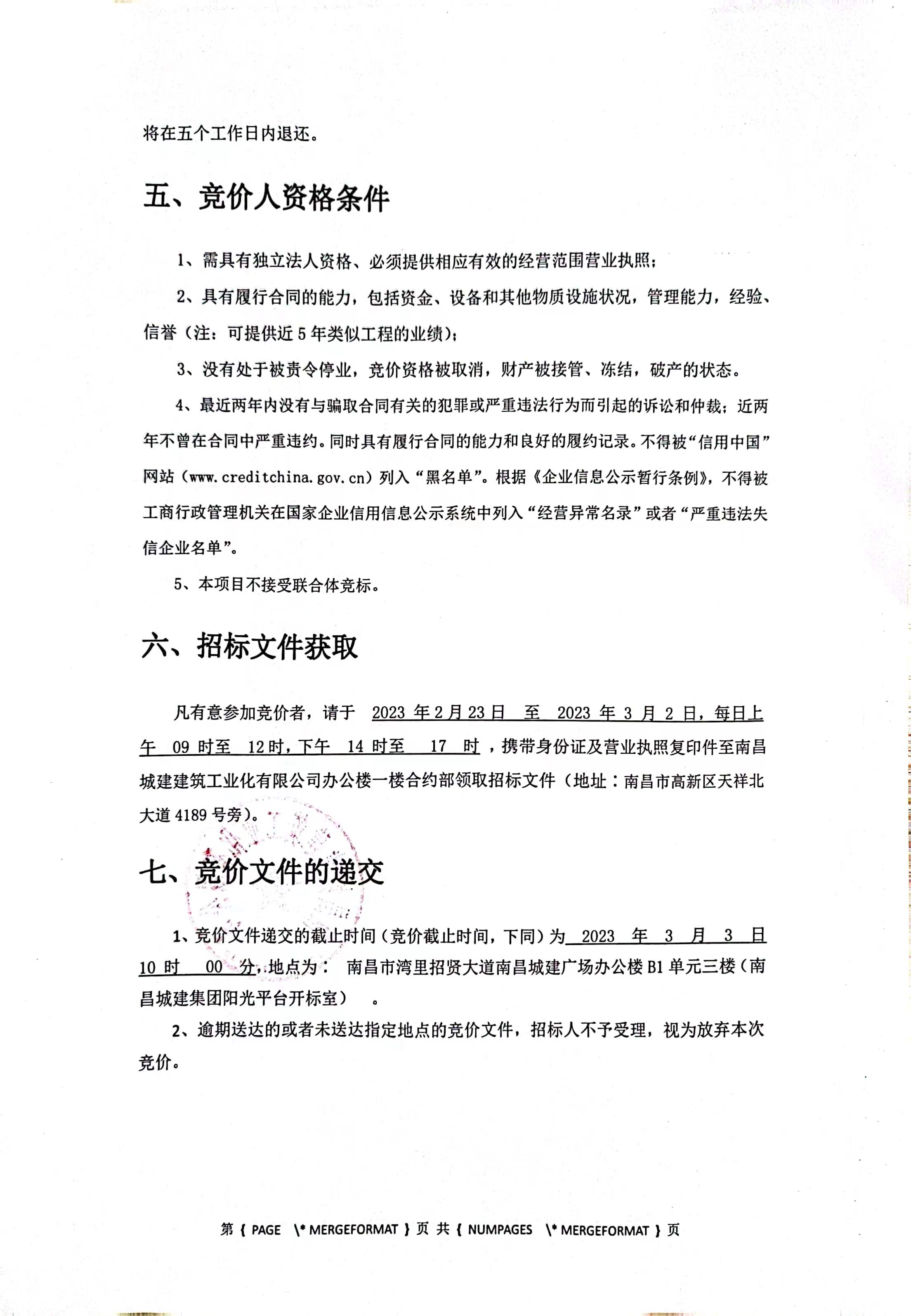 凡有意参加竞价者,请于 2023 年2月23日 至 2023 年 3 月 2 日,每日上午 09 时至 12时,下午 14 时至 17 时 ,携带身份证及营业执照复印件至威廉体育建筑工业化有限公司办公楼一楼合约部领取招标文件(地址∶南昌市高新区天祥北大道4189号旁)。