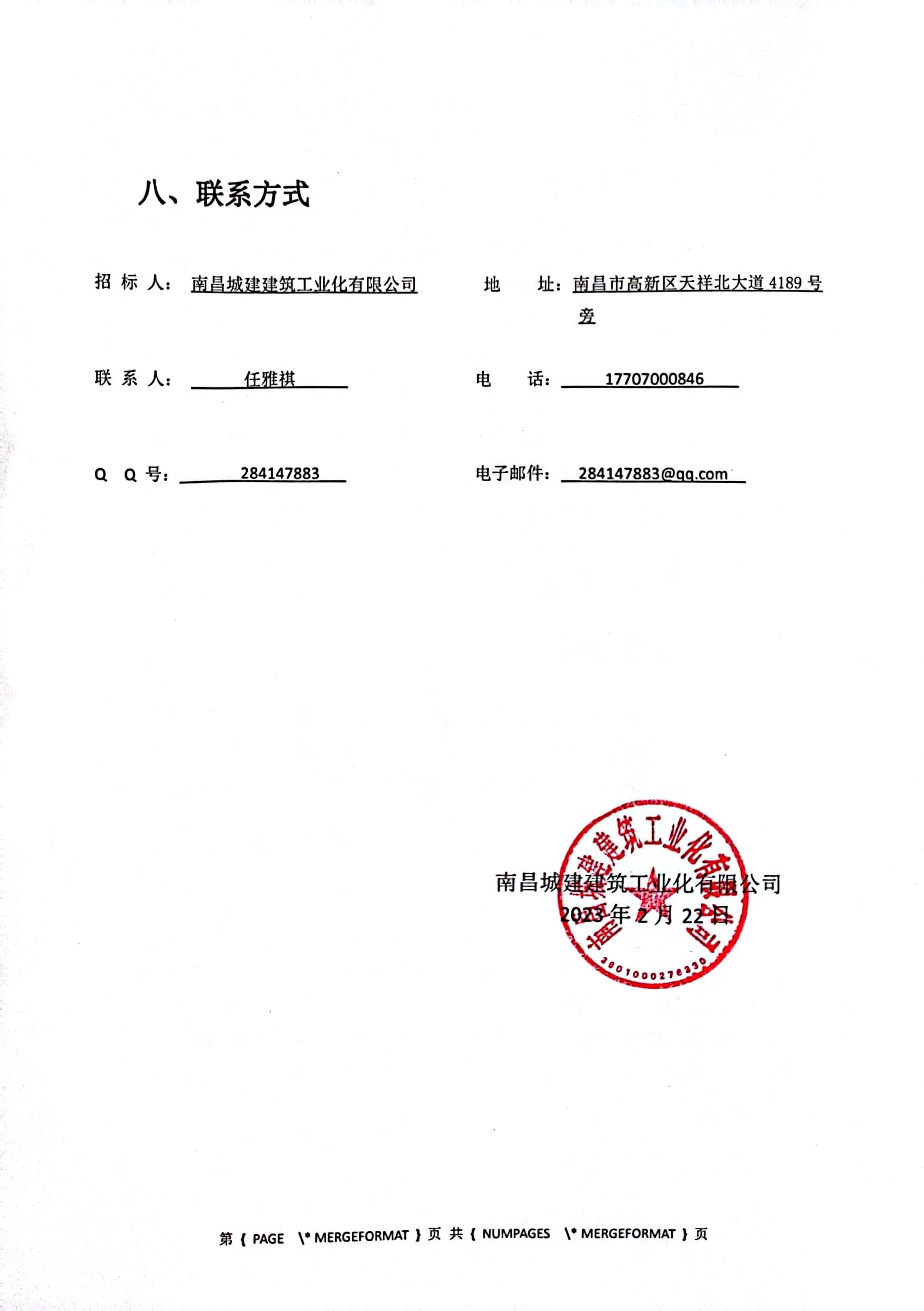 招 标 人: 威廉体育建筑工业化有限公司 地 址: 南昌市高新区天祥北大道4189号旁