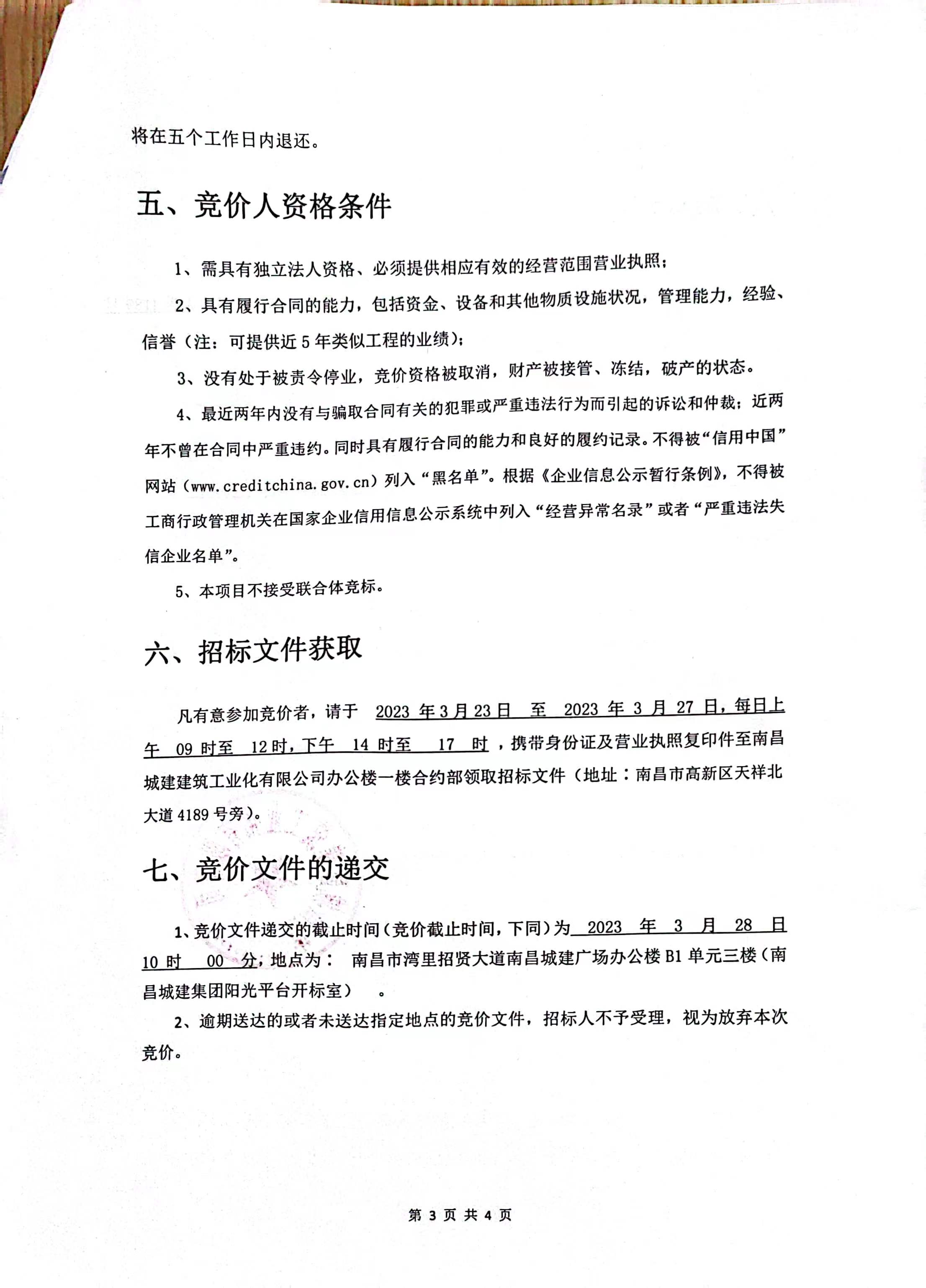 1、竞价文件递交的截止时间(竞价截止时间,下同)为 2023 年 3 月 28 日10 时 00 分,地点为∶ 南昌市湾里招贤大道威廉体育广场办公楼B1单元三楼(威廉体育集团阳光平台开标室) 。