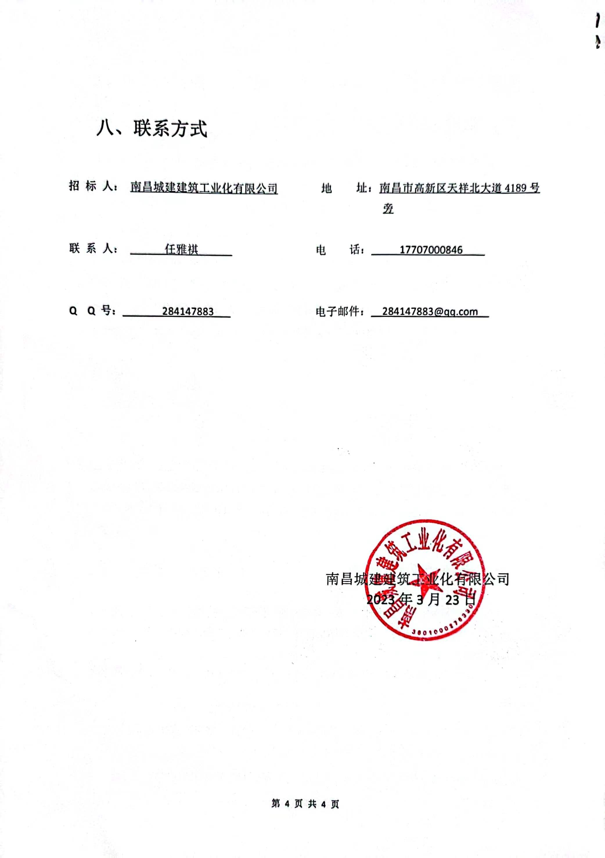 招 标 人: 威廉体育建筑工业化有限公司 地 址:南昌市高新区天祥北大道4189号旁