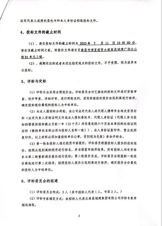 (1)、递交投标文件的截止时间为 2023年 7 月 11 日 10 时 00 分,请在该截止时间之前,将报价文件递交至南昌市湾里招贤大道威廉体育广场办公楼B1单元三楼。