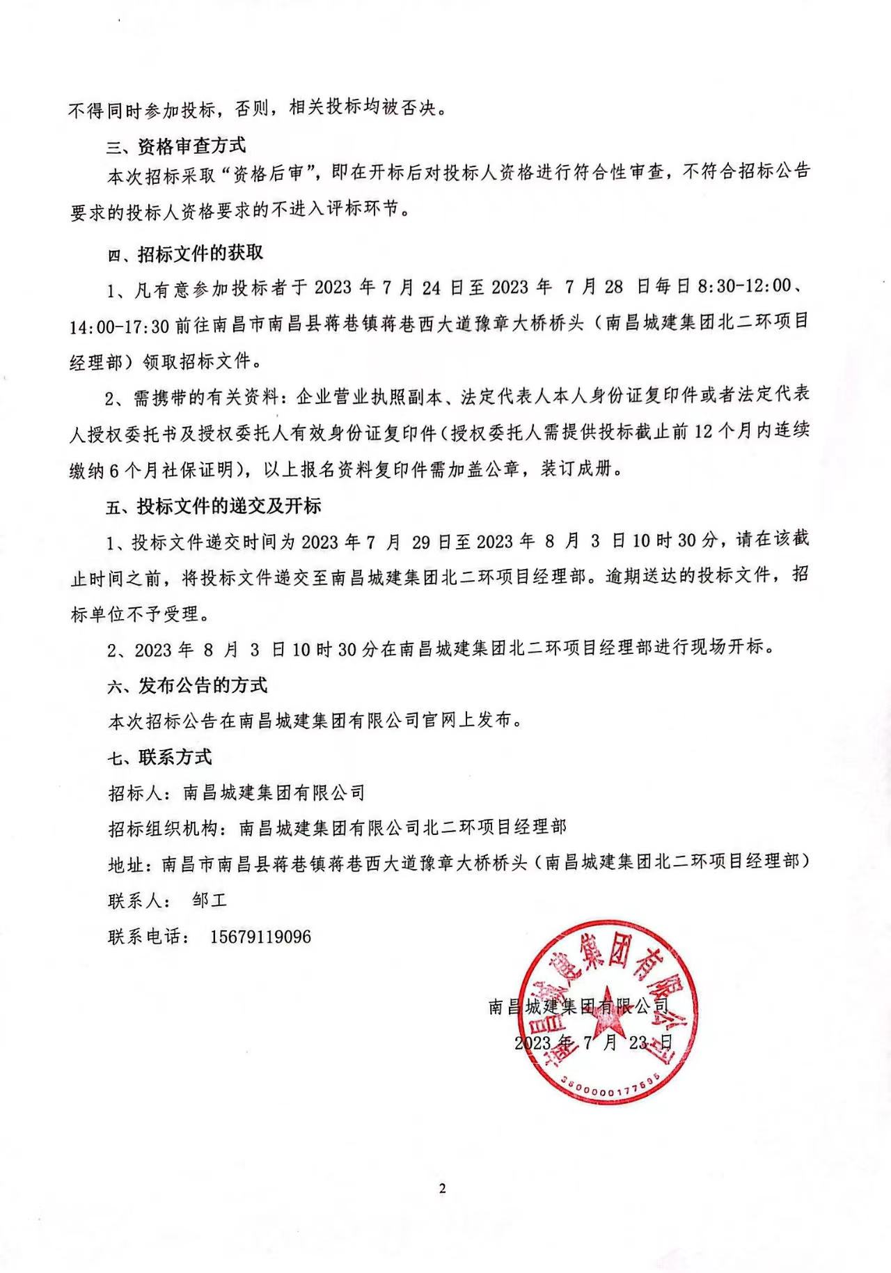 1、凡有意参加投标者于2023年7月24日至2023年 7月28 日每日8:30-12:00、14:00-17:30前往南昌市南昌县蒋巷镇蒋巷西大道豫章大桥桥头(威廉体育集团北二环项目经理部)领取招标文件。