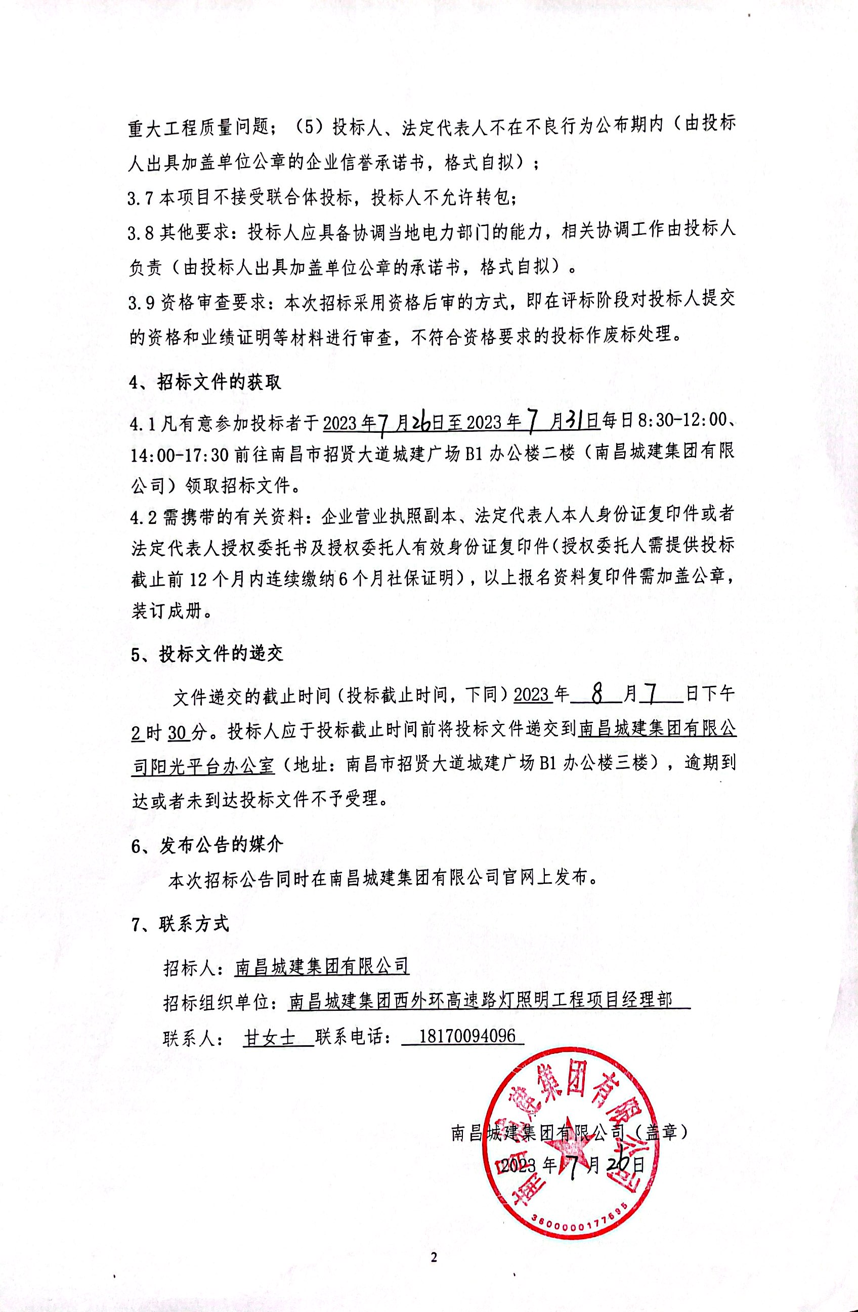 招标组织单位:威廉体育集团西外环高速路灯照明工程项目经理部