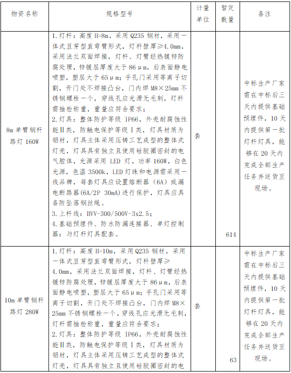2.2.1 本次物资采购招标物资品种、数量及附件等详见附表一《物资需求一览表》。