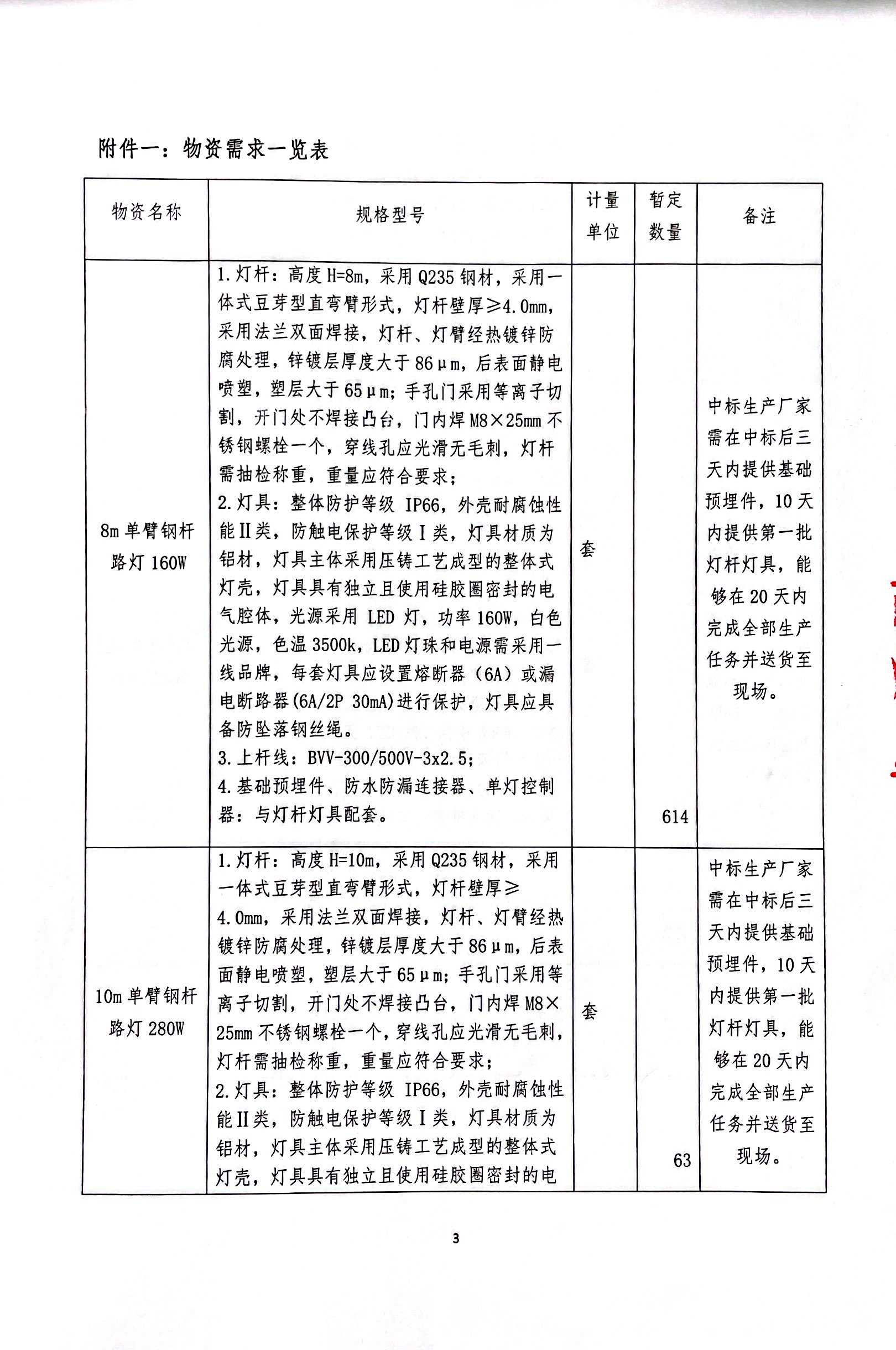2.2.3本次加工件材料采购招标的供货期见《物资需求一览表》。