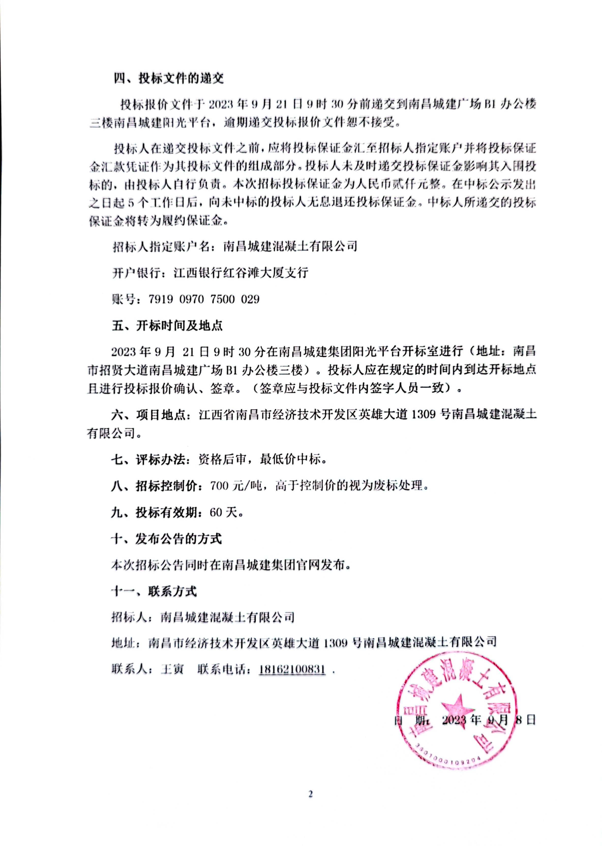 八、招标控制价:700元/吨,高于控制价的视为废标处理。