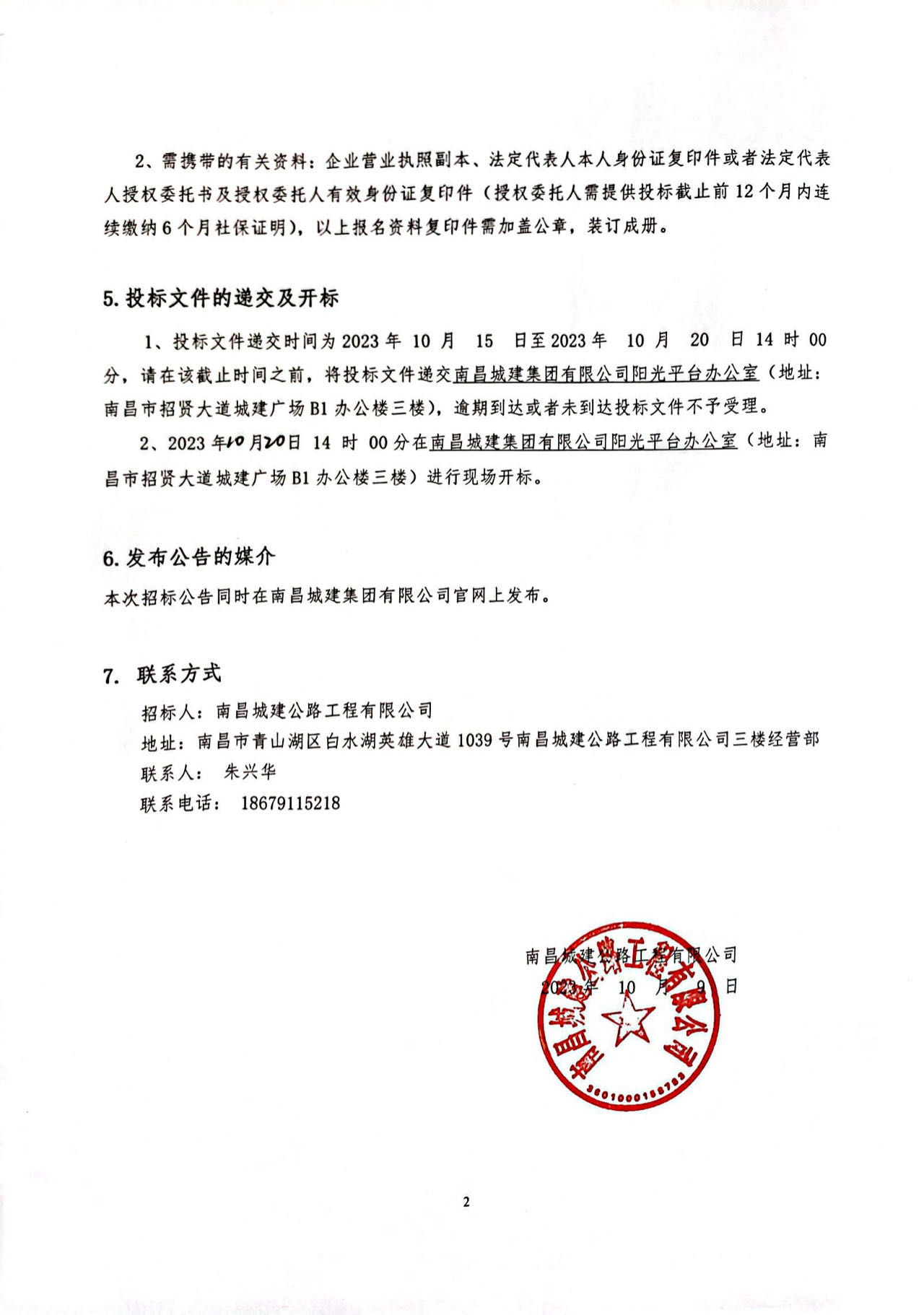 1、凡有意参加投标者于2023年 10月 10 日至2023年 10 月 14 日每日9:00-12:00、14:00-17:00在 城建公路工程有限公司三楼经营部 持单位法定代表人身份证件或授权委托书及本人身份证与营业执照复印件(盖公章)领取投标文件。