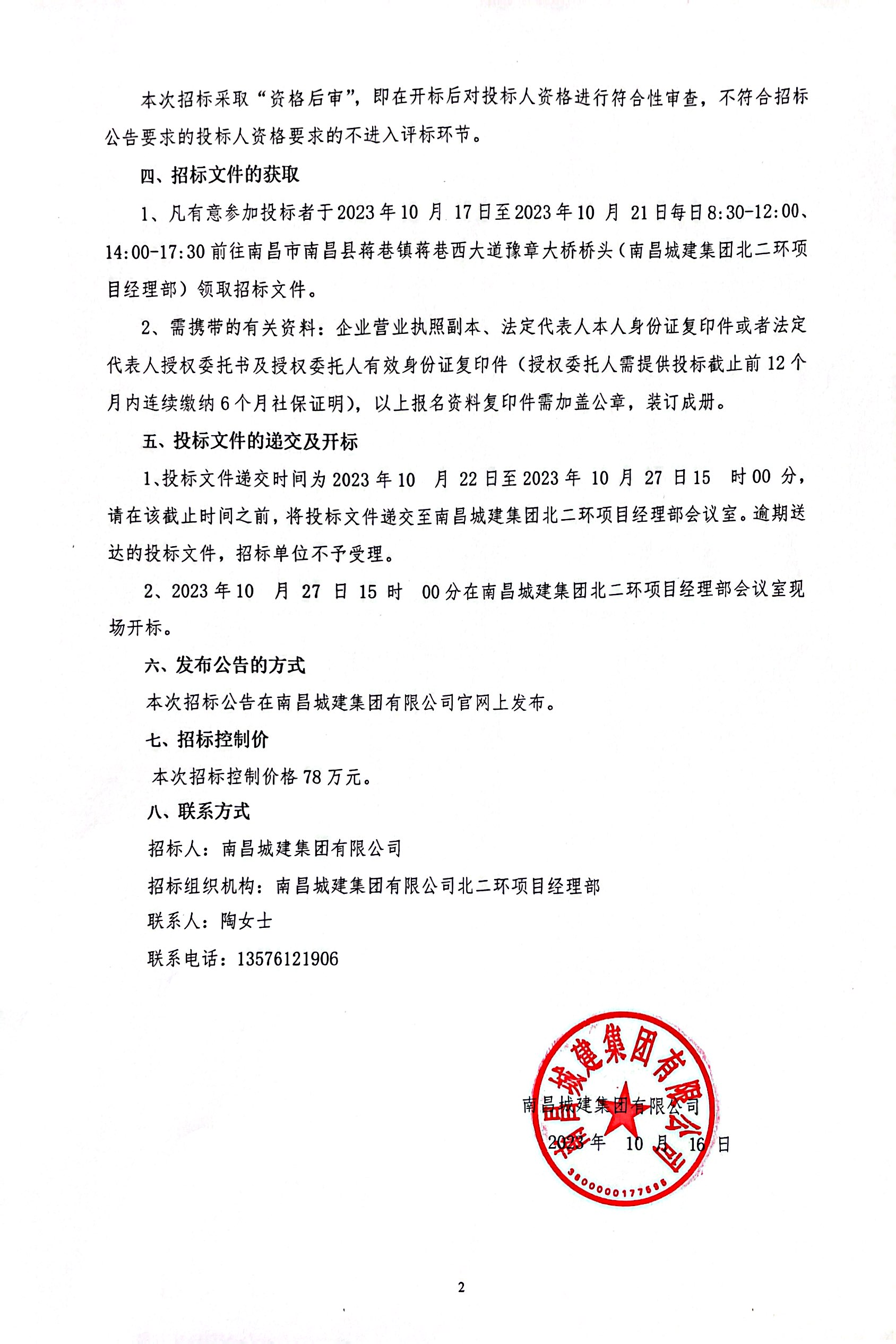 1、凡有意参加投标者于2023年10 月 17日至2023年10 月 21日每日8:30-12:00、14:00-17:30前往南昌市南昌县蒋巷镇蒋巷西大道豫章大桥桥头(威廉体育集团北二环项目经理部)领取招标文件。