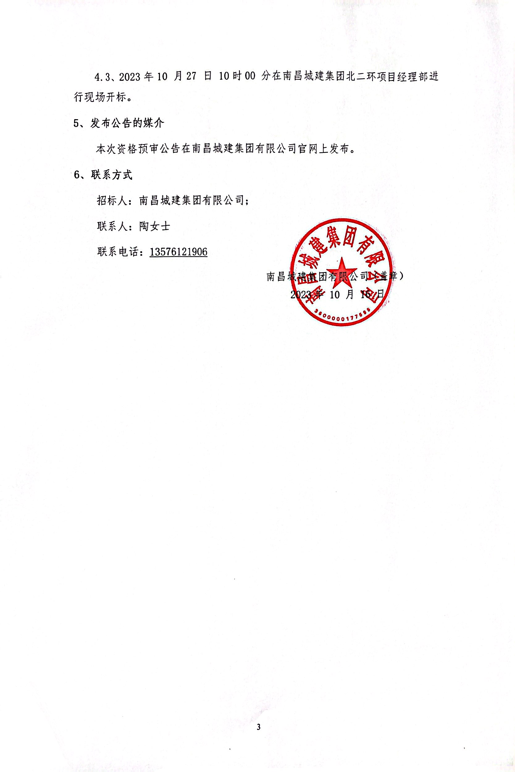 4.3、2023年10 月27 日 10时00 分在威廉体育集团北二环项目经理部进行现场开标。