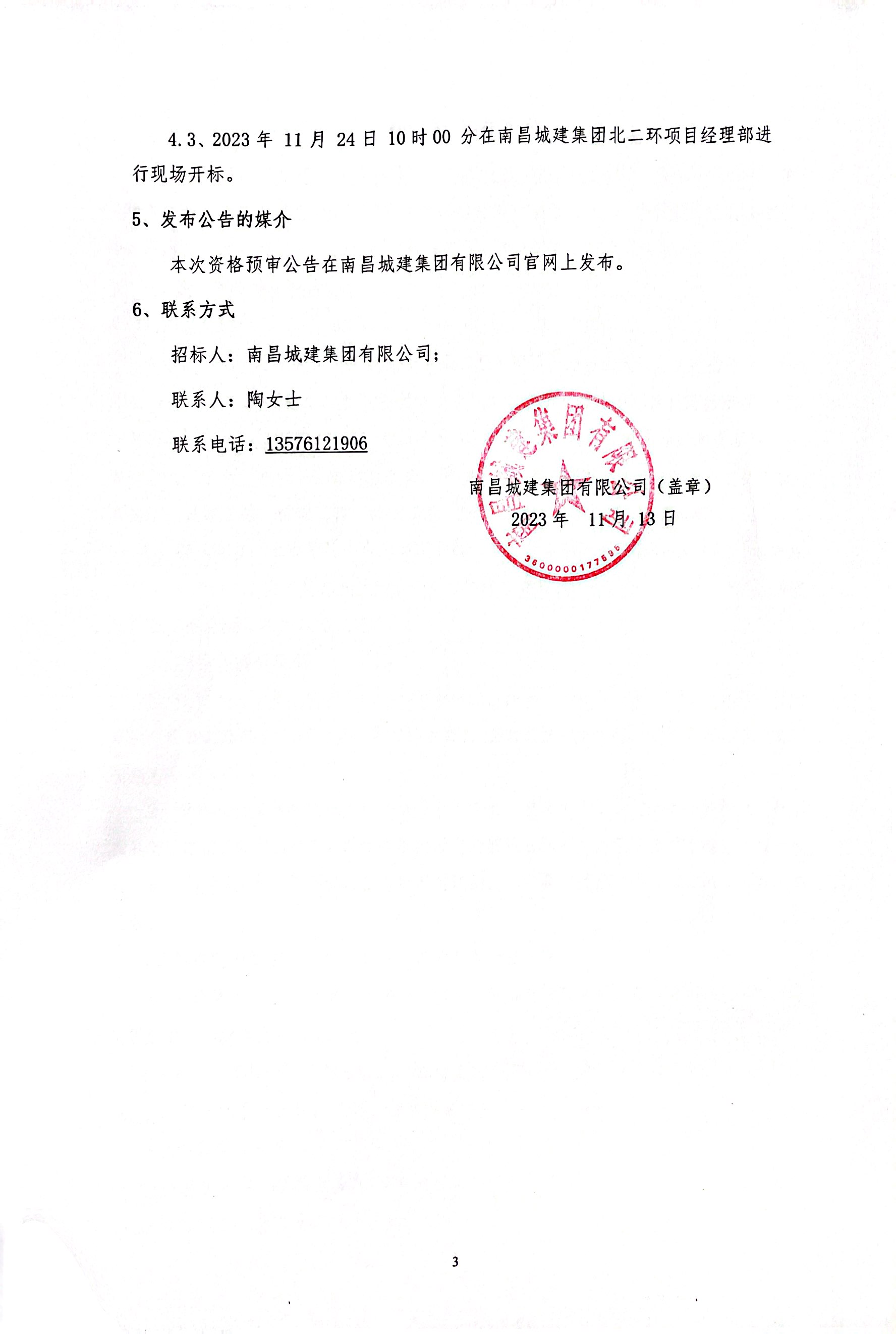 4.3、2023年 11月 24日 10时00 分在威廉体育集团北二环项目经理部进行现场开标。